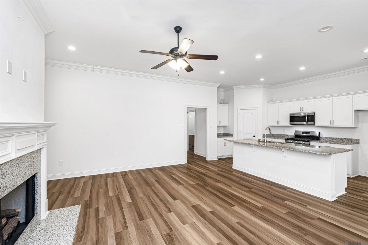 Beautiful 3 bedroom, 2 bath home located in the desirable Grand Oaks subdivision featuring a spacious open and split floor plan designed for comfortable living. This home offers 9' ceilings, vinyl flooring throughout the main living areas, and carpet in the bedrooms. The kitchen is equipped with granite countertops, stainless steel appliances, and a pantry. The living room features a cozy gas fireplace, making it a perfect space for relaxing or entertaining. The primary suite includes an en suite bathroom with granite countertops, a soaking tub, separate shower, and ample space to unwind. Additional highlights include a laundry room with cabinets, a gas tankless water heater, and a 2 car garage. Enjoy outdoor living on the screened-in patio overlooking a fully fenced backyard with a privacy fence, providing the perfect space for gatherings or quiet evenings. Schedule your showing today!