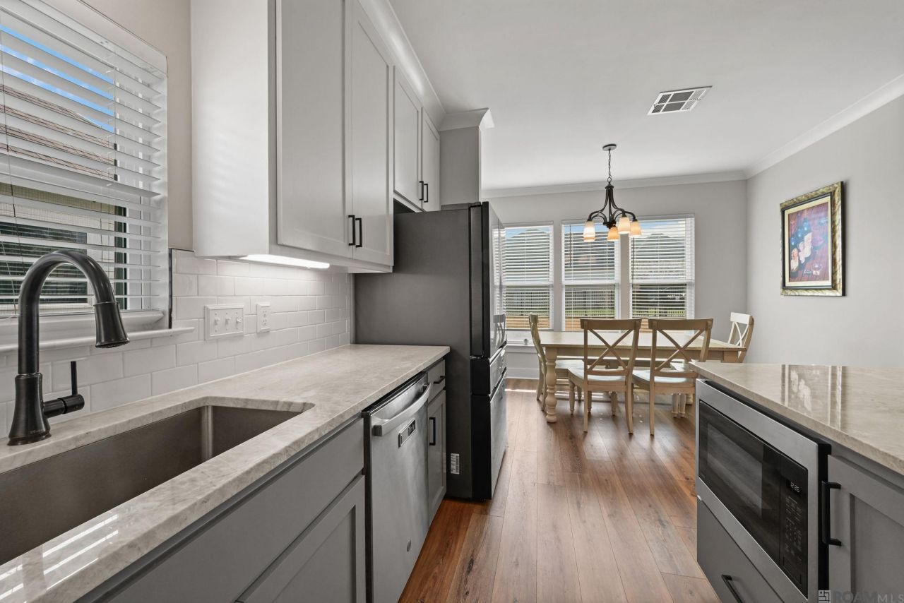 BETTER than NEW once MODEL HOME with many UPGRADES available in Parks at Water Oak. NO carpet-LVT flooring and oversized tile throughout, high-end appliances, crown molding in living areas/master bedroom, custom cabinetry, granite slab in kitchen and bath counters and a garden tub in the master bath. ALL windows and doors have custom installed blinds. ALL appliances and TV's stay for ease of transition, including the new 85 inch smart TV in living. Nest Smart home management system and cameras stay for added comfort and security. 4bed/3bath offering open and spacious living areas with 11' high ceilings. Living room is open to dining area with wall of windows to the fully FENCED backyard with view of waterfront. Chef's island in kitchen with breakfast island and walk-in pantry. Stone granite counters in kitchen and all baths. Courtyard style back porch. This is THE ONE! Schedule a tour today!