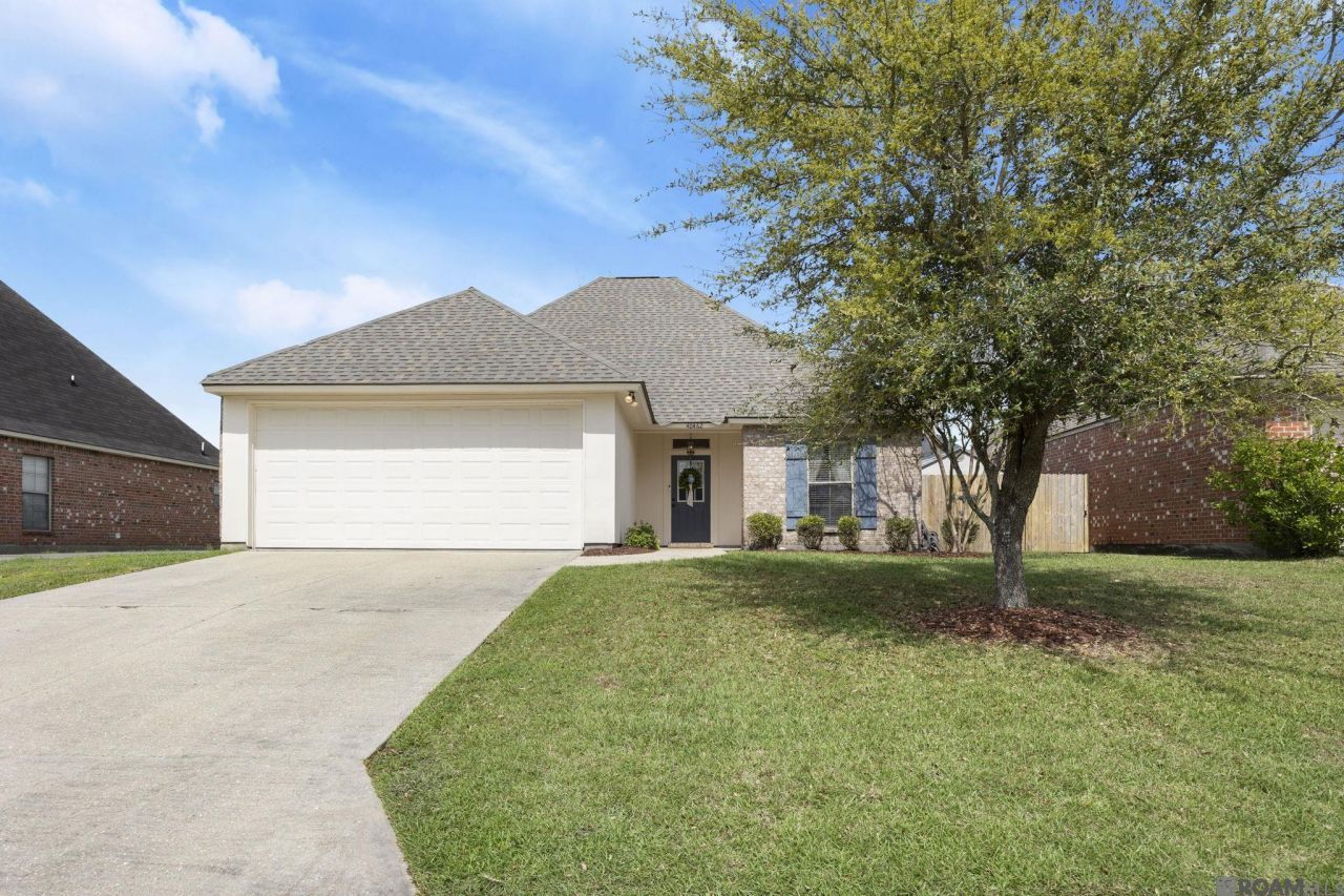 Charming, very clean, and well-maintained home offering low maintenance living inside and out, ready for its new owner! Located in the sought after Cross Creek subdivision, this home features a desirable split floor plan and a bright, light-filled kitchen with stainless steel appliances, light painted cabinetry, and stylish staggered upper cabinets that add character and visual appeal. The spacious primary suite offers a relaxing retreat with a garden tub, double vanities, and ample cabinetry in the primary bath. Step outside to enjoy the low maintenance backyard, complete with fencing and outdoor lighting perfect for enjoying the outdoors without the burden of extensive upkeep. The covered patio provides a great space for relaxing or entertaining while staying cool in the shade. Home is zoned for the brand-new Prairieville High School! No Flood zone. Will not last long!