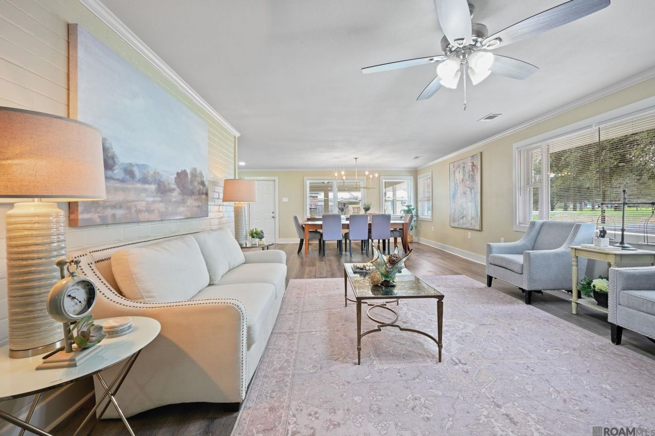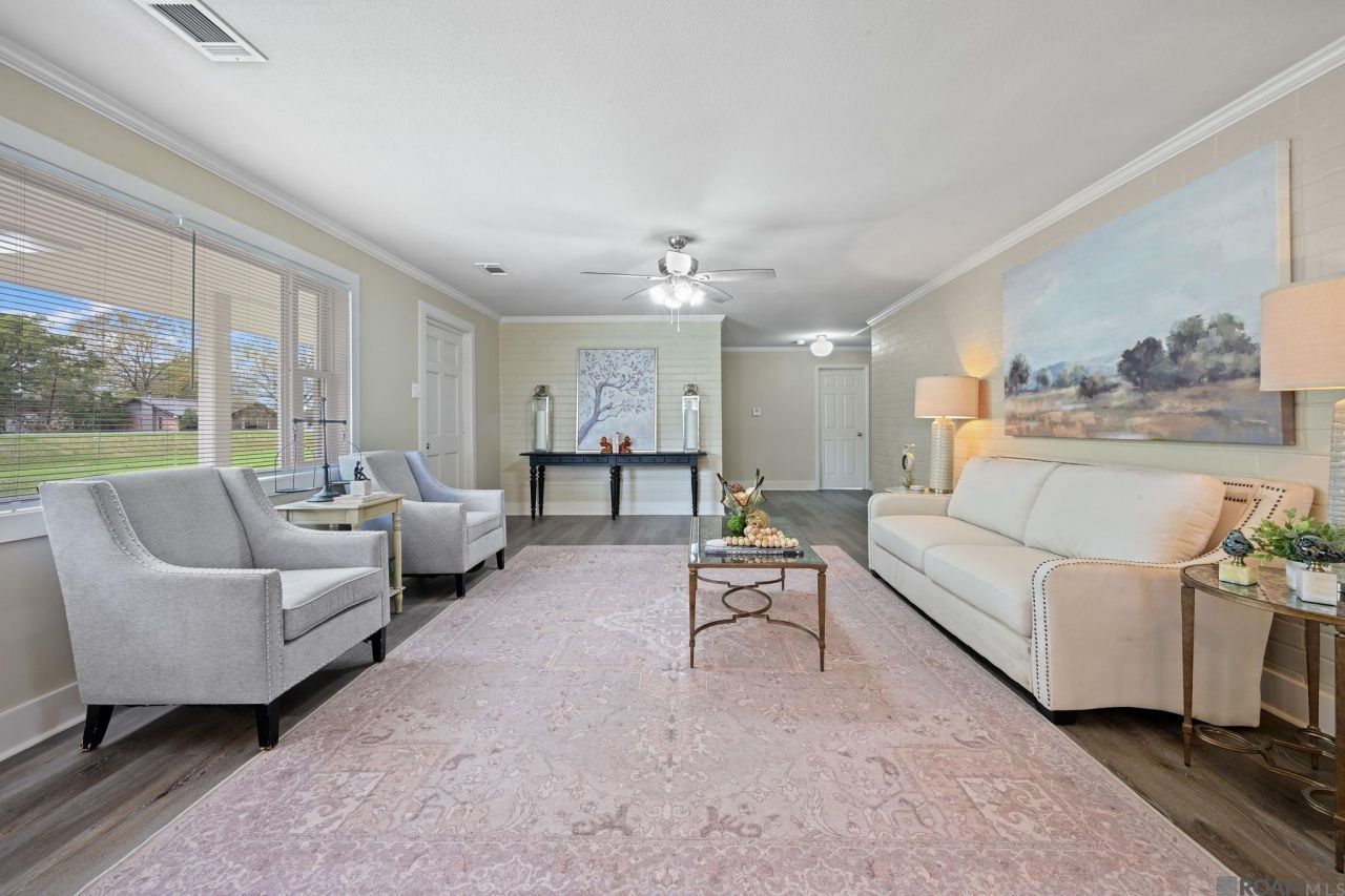 Welcome to this beautifully updated 3-bedroom, 2.5-bath home featuring a bright and spacious layout. The large living room is filled with natural light, creating a warm and inviting space for relaxing or entertaining. The dining room easily accommodates an 8-seat table, making it perfect for gatherings and family meals. The updated kitchen features brand-new cabinets, stainless steel appliances, quartz countertops, a large island, and a convenient coffee/bar area. All bedrooms are generously sized and offer ample storage. Recent upgrades include new central heating and air conditioning with updated ductwork, fresh interior and exterior paint, and new flooring throughout. Step outside to enjoy the backyard's open patio?ideal for outdoor entertaining?plus a large workshop or man cave that offers endless possibilities. This move-in-ready home combines modern updates with comfortable living and plenty of space inside and out.