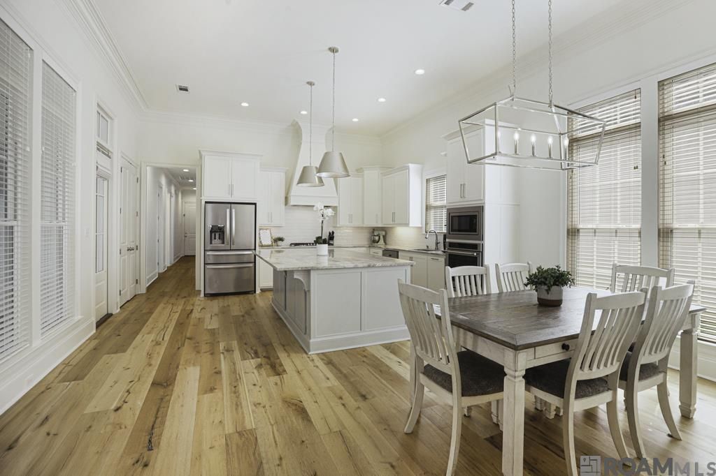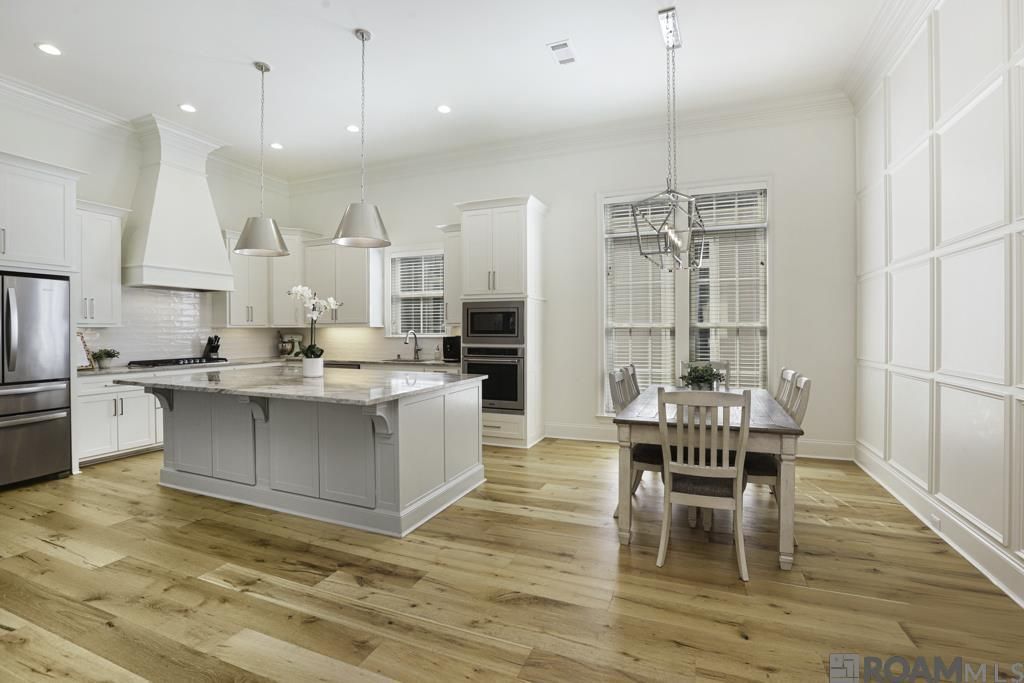 Charming 4-bedroom, 3-bath home in The Village of Conway! Step inside to find stunning wood floors, soaring 12-foot ceilings, and an open floor plan filled with natural light. The living room features large windows and a beautiful fireplace, creating the perfect gathering space. The kitchen is a showstopper with a spacious island, gas cooktop, granite countertops, white tile backsplash , stainless steel appliances, and a walk-in pantry. The dining room is a true highlight, showcasing custom millwork and a gorgeous chandelier. From the kitchen, step out to the side patio?already prepped for an outdoor kitchen! At the front of the home, you'll find a guest bedroom and full bath, while the rear offers two additional bedrooms and a hall bath with double sinks. The master suite is a retreat of its own with double vanities, a freestanding tub, tiled shower, and a huge walk-in closet. Practical features include a double garage with an extra bay for a golf cart, plus a mudroom area with built-ins and a laundry room with sink. This home combines elegance, function, and timeless design?ready to welcome you home!