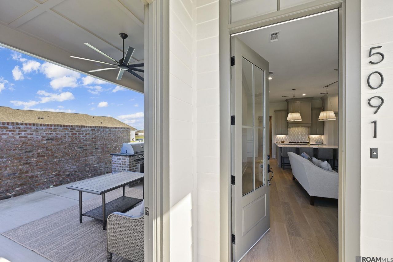 **OPEN HOUSE FRIDAY, 12PM-2PM & SUNDAY 2PM-4PM** Brand-new construction in one of Ascension Parish's newest and most desirable communities! This thoughtfully designed home offers upscale finishes, functional spaces, and modern comfort just minutes from shopping, dining, and top-rated Ascension Parish Schools. Beautiful wood flooring flows throughout the main living areas and all bedrooms, creating warmth and continuity. The living room features a sleek fireplace and convenient floor outlet for flexible furniture placement. The kitchen is both stylish and functional with quartz countertops, a 36-inch gas cooktop, custom vent hood, soft-close cabinetry, and a large island with storage on both sides. The dining area is accented with a designer feature wall for added character. Additional interior highlights include a powder bath with decorative detailing, spacious laundry room with folding counter and storage, linen closet, and a custom mudroom with built-in cubbies. Gold-accented hardware, plumbing fixtures, lighting, and framed mirrors provide a cohesive, elevated finish throughout. The private primary suite offers a spa-like bath with a 6-foot soaking tub, custom-tiled shower with niche, frameless glass enclosure, and separate water closet. Enjoy outdoor living on the covered patio featuring a coffered ceiling, recessed lighting, ceiling fan, louvered shutters, brick privacy wall, and outdoor kitchen, perfect for entertaining year-round. The oversized garage includes 10-foot ceilings plus a dedicated golf cart bay with its own overhead door. Community amenities include a resort-style pool, pool house, fitness center, scenic green spaces, and a pond. Experience low-maintenance living in a beautifully planned neighborhood designed for both relaxation and connection.
